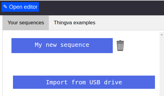 Rien ne sert de compliquer les choses, une séquence, c'est un simple fichier .txt. A la racine de votre clé USB ("premier dossier"), créez un dossier "Thingva". Dans ce dossier, copiez la séquence à importer.