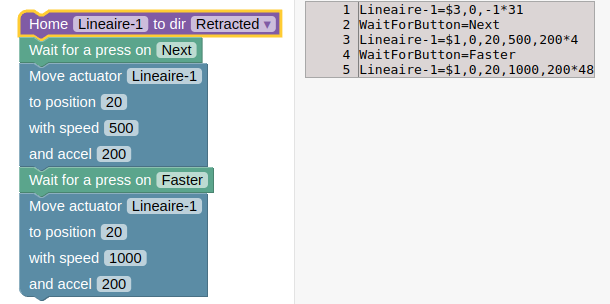 Il convient d'initialiser chaque actionneur. Ici, on utilise un actionneur nommé Lineaire-1 et un autre Rotatif-1